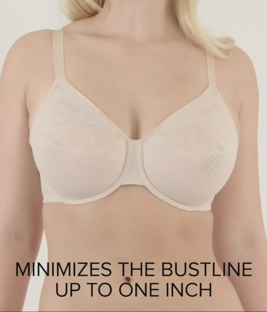 Designed to reduce the bustline up to one inch, this pretty minimizer bra is the one you'll reach for again and again.